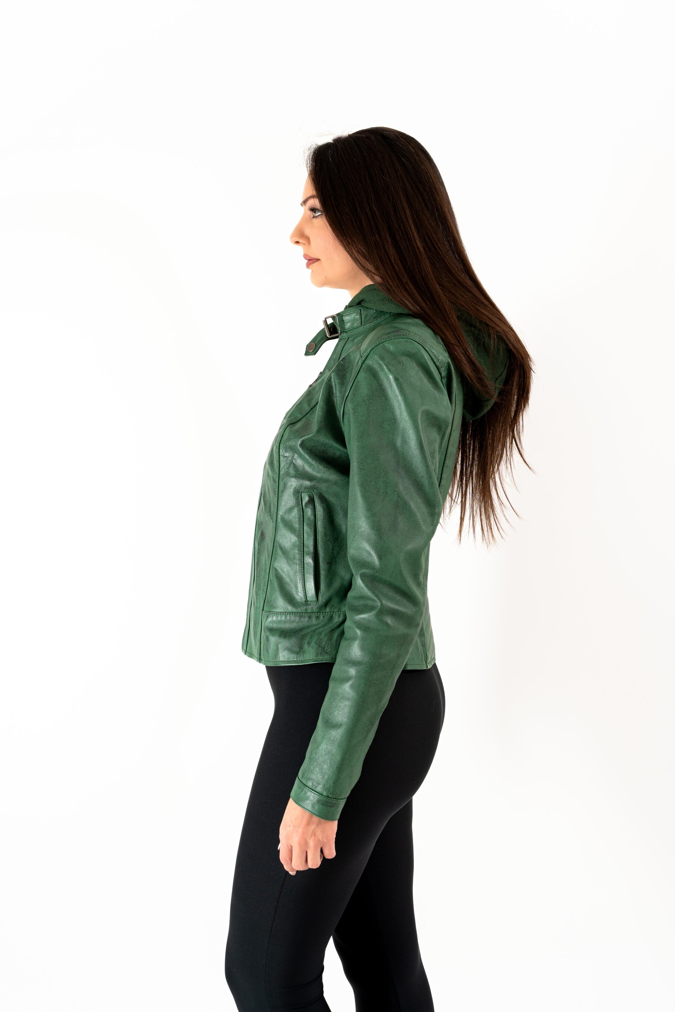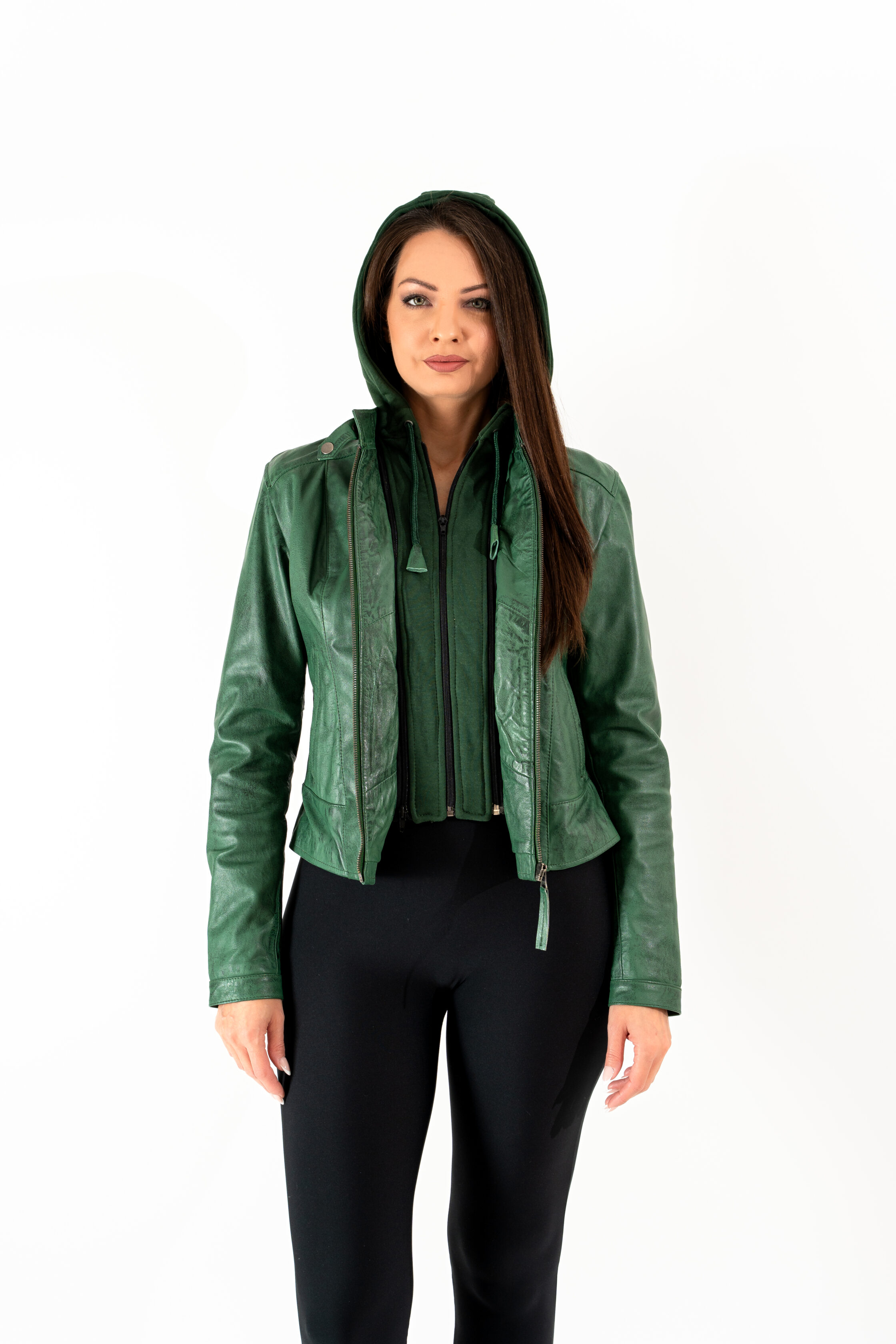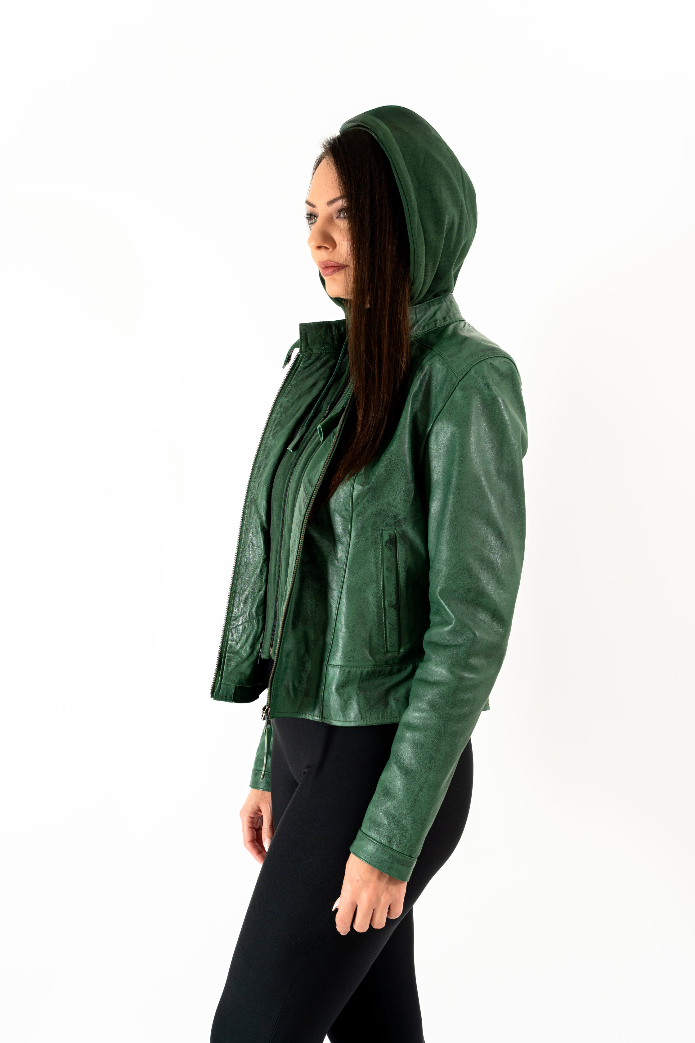 -Δερμάτινη κουκούλα με γούνινο φινίρισμα μονοκόμματης αλεπού