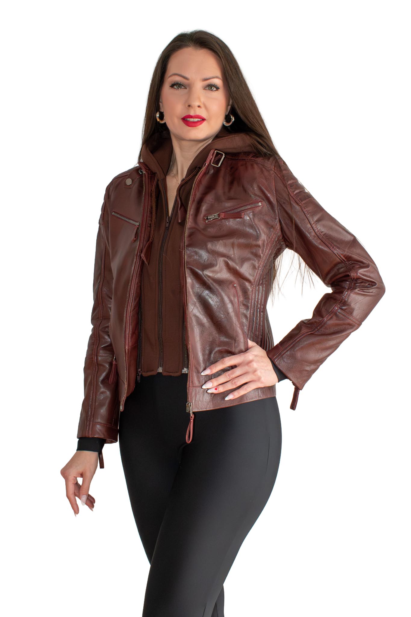 Δερμάτινο μπουφάν Anna – Μπορντό